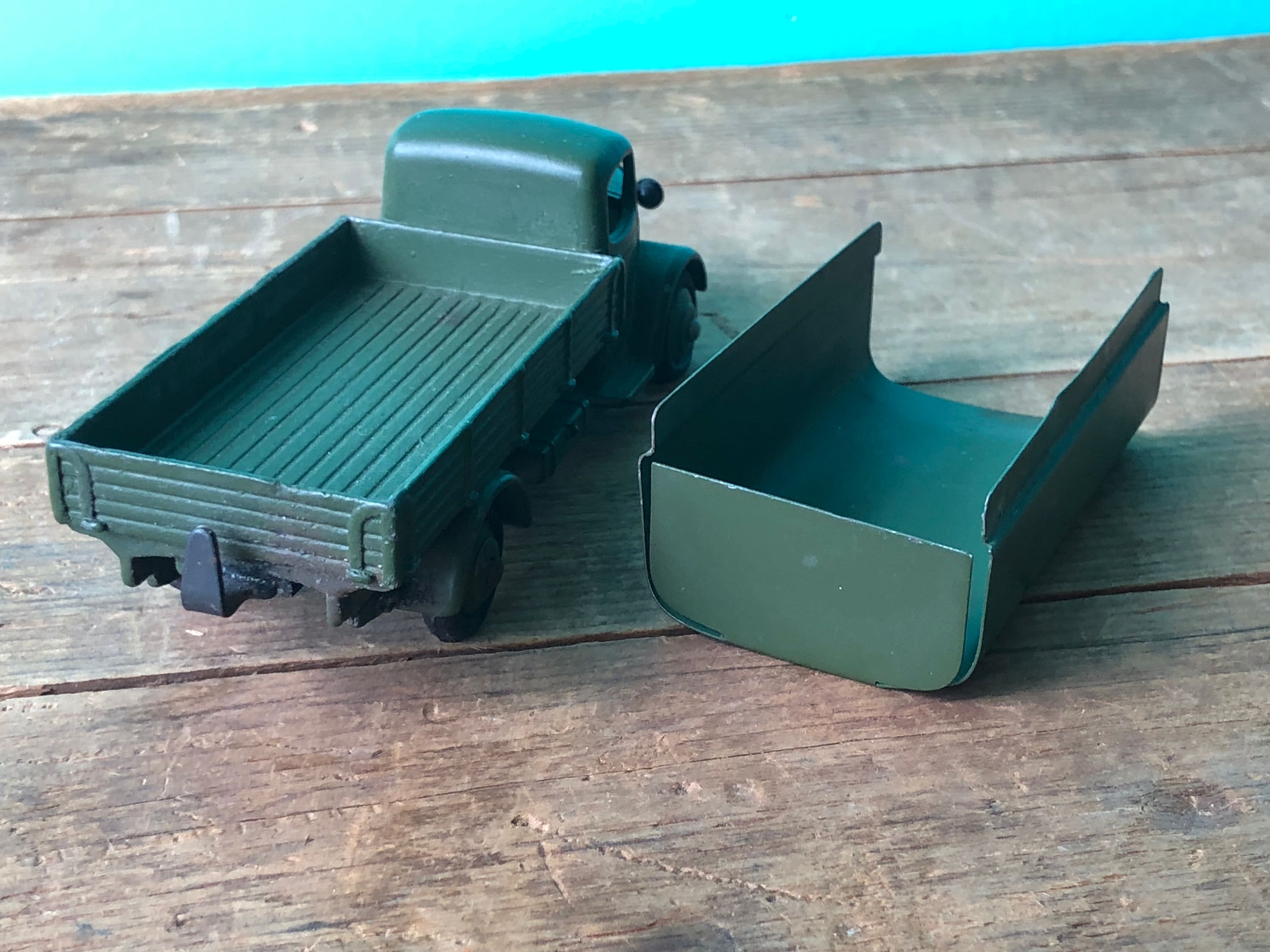 Dinky Toy 625 Austin Covered Military Wagon in very good condition. There is some light wear to the paint along some of the edges. There is also some wear to the paint at the point of contact between the truck and the removable cover, not visible with the cover on. The paint and detail on the rest of the truck is in very good condition. Please see pictures carefully and let us know if you have any questions!