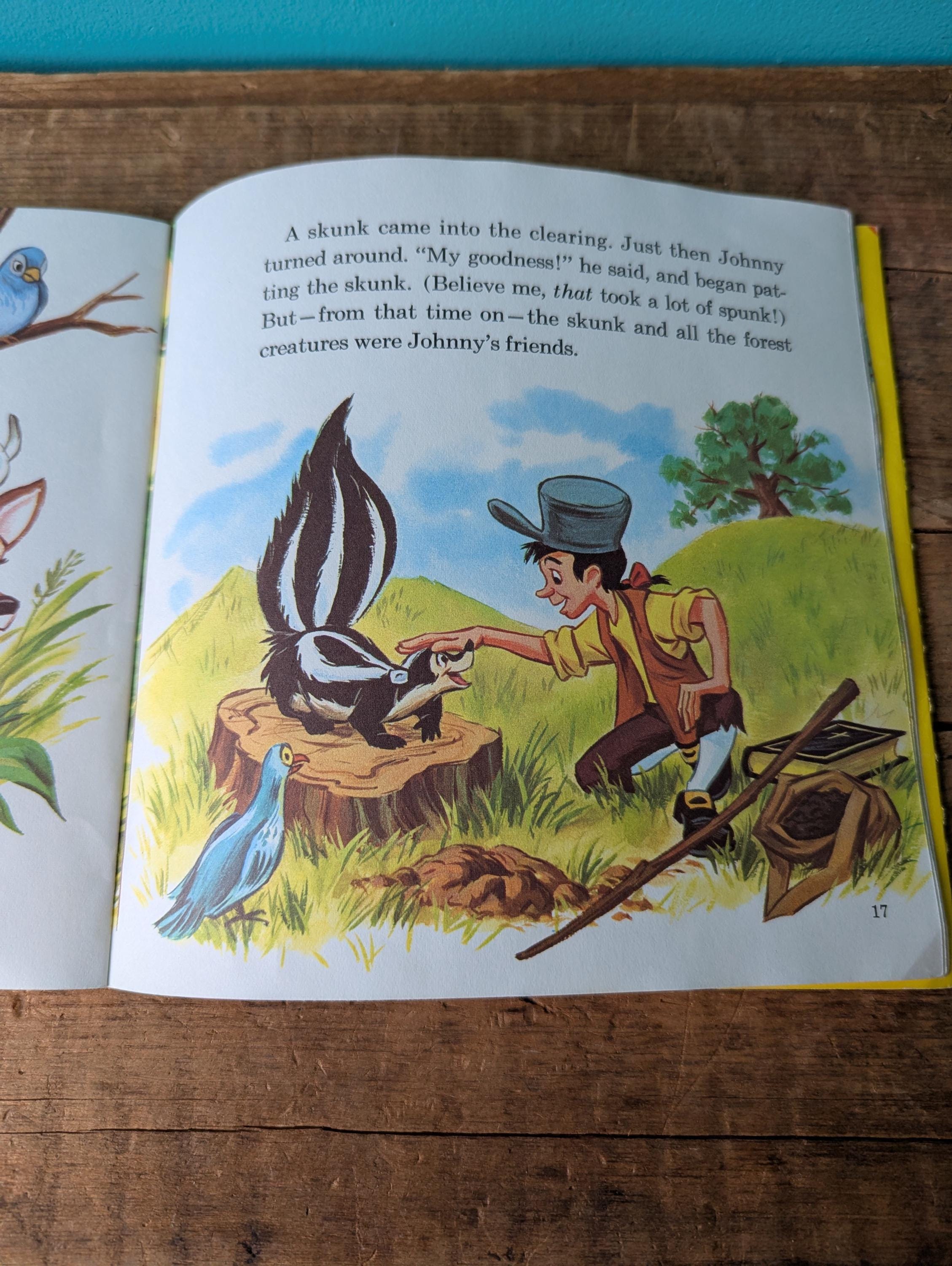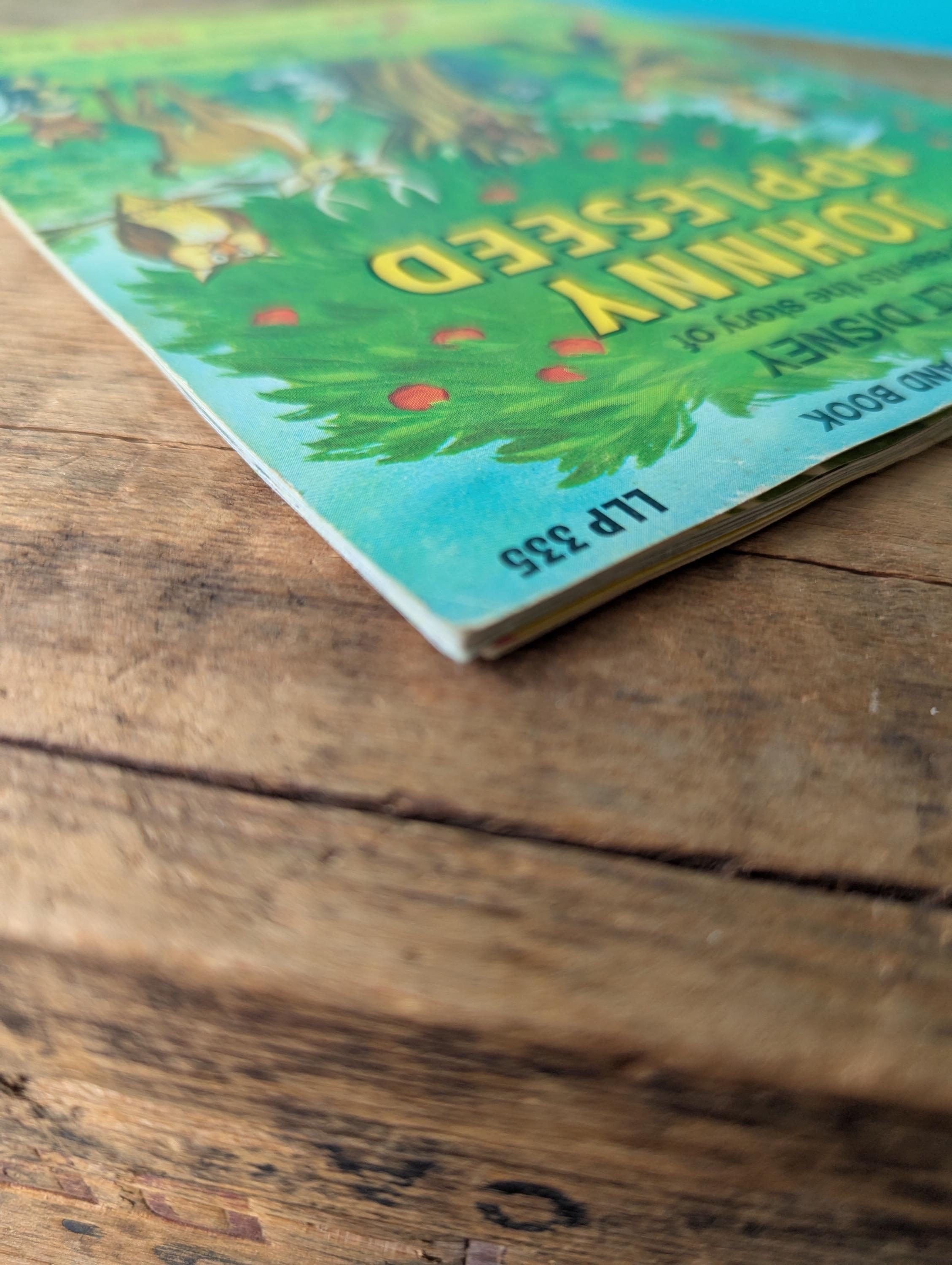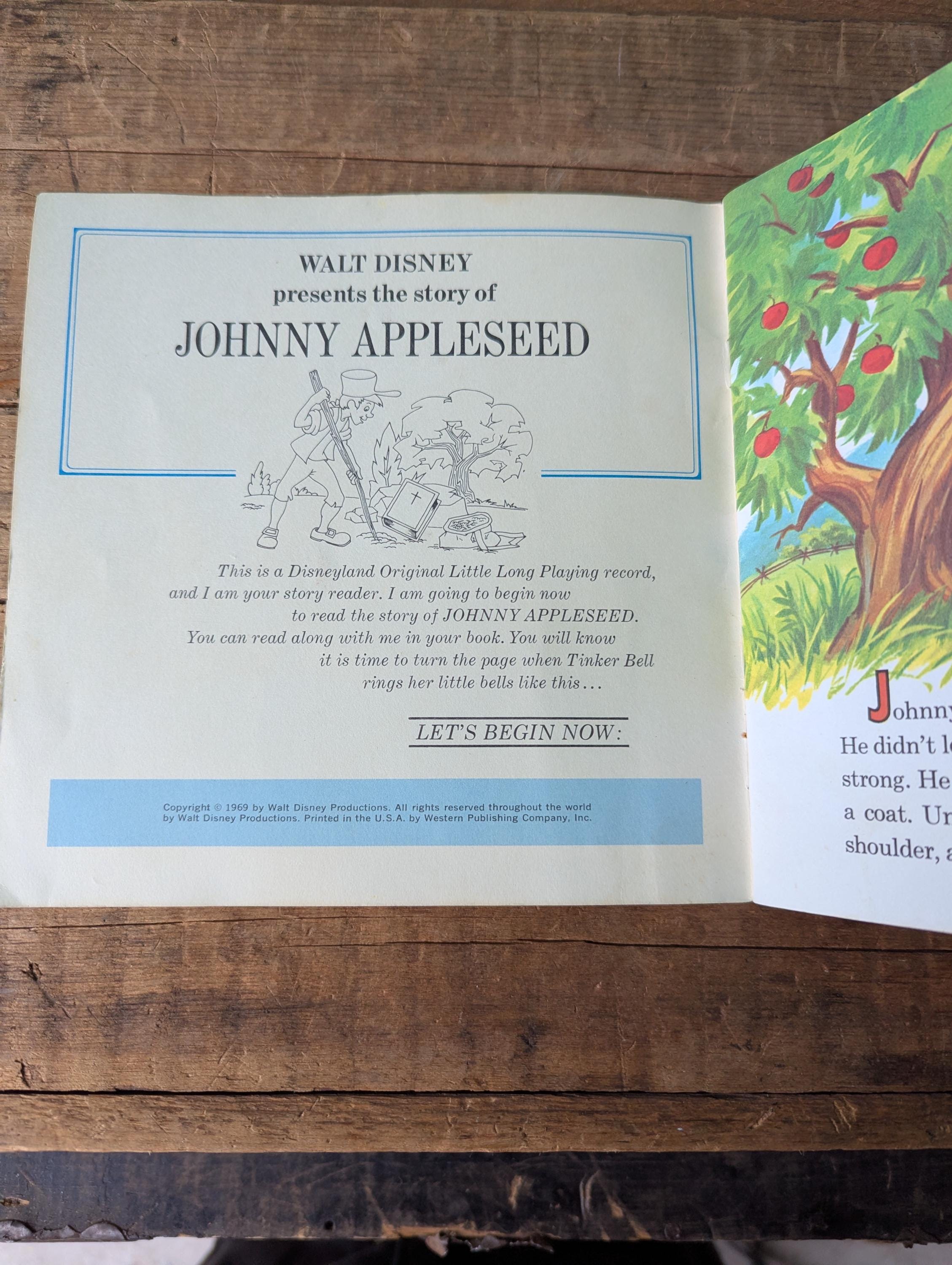 Disney's record and book set number 335 Johnny Appleseed. In good vintage condition, both the 33 1/3 7" record as well as the 24 page book showing some light wear. The record has a scratch, pictured. Please see pictures for details and let us know if you have any questions! Would make a great retro activity for the kids or great addition to a collection.
